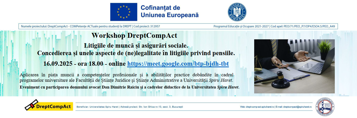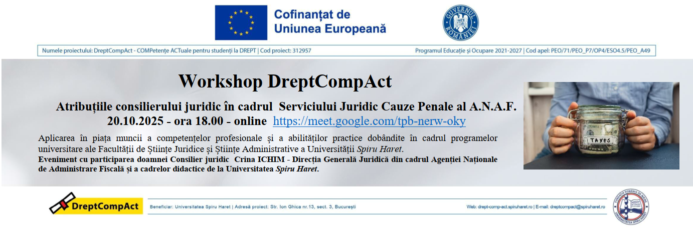 - JURISTUL ÎN ADMINISTRAȚIA PUBLICĂ , Workshop online, 8.04.2025, ora. 18.00