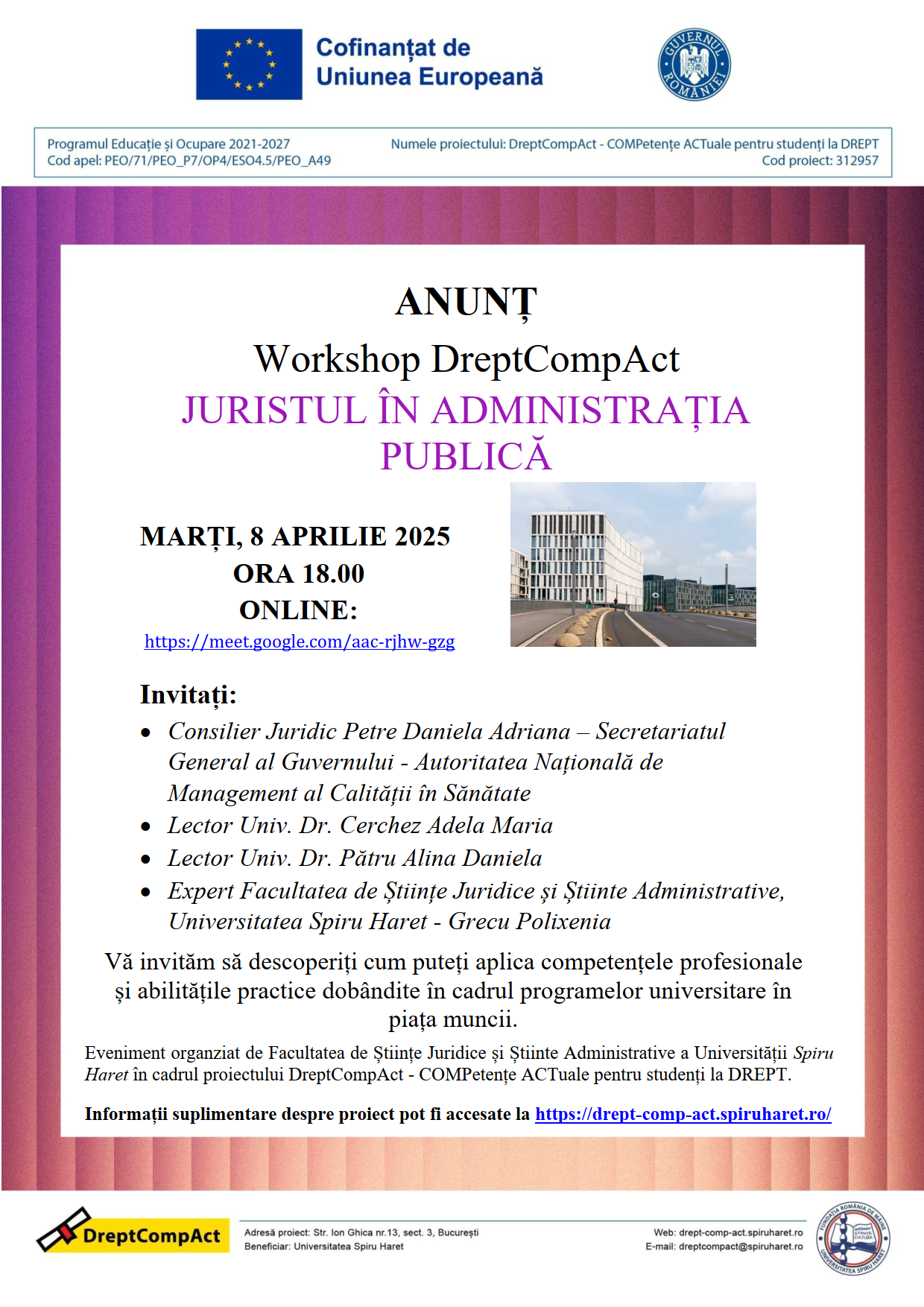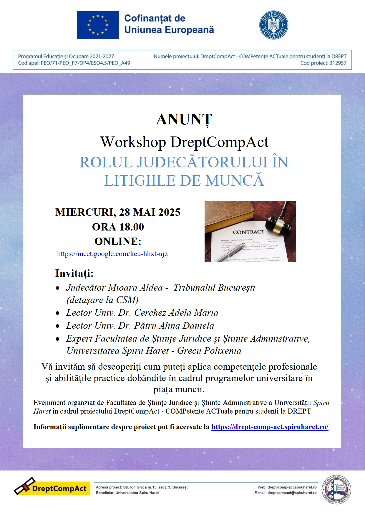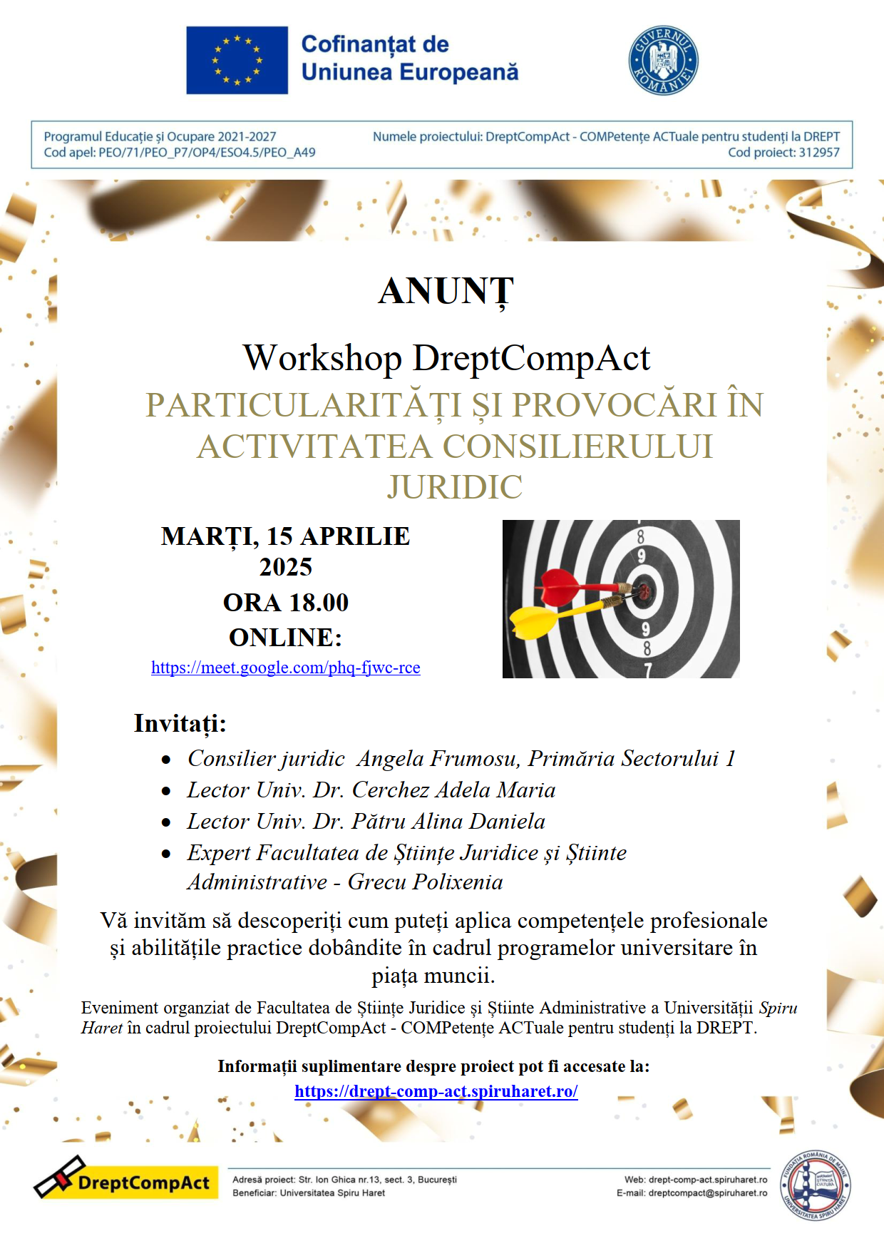 Detali despre eveniment găsiți pe https://drept-comp-act.spiruharet.ro/index.php/workshop-uri/workshop-uri-cu-mediul-economic