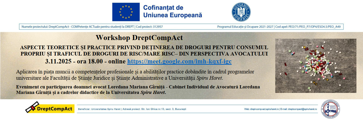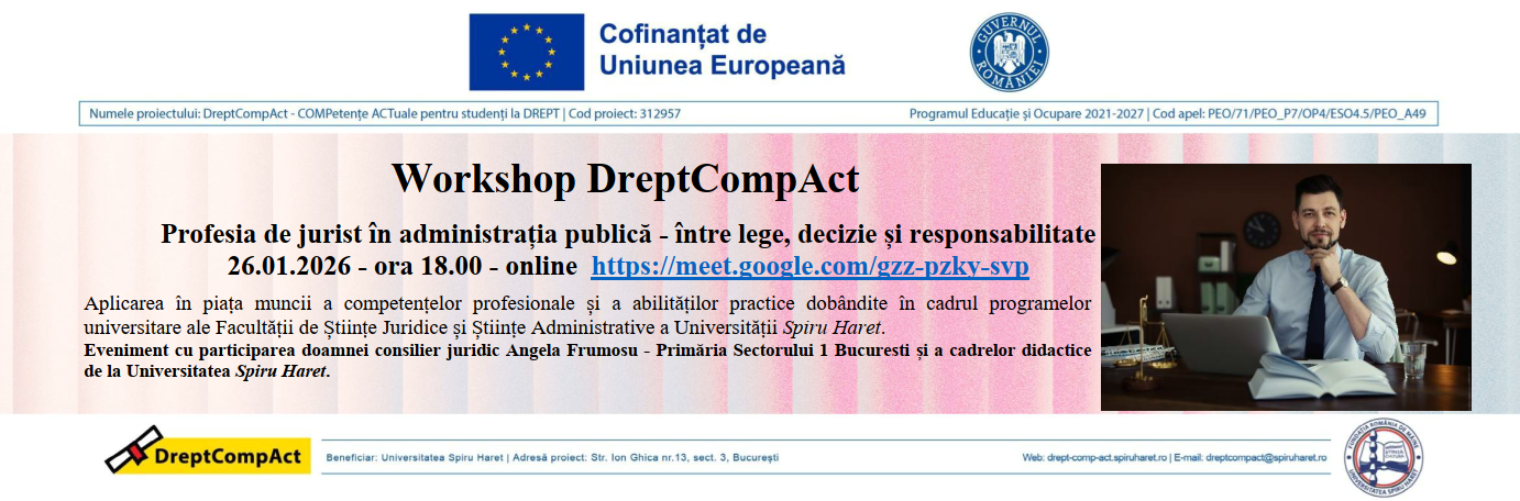 - DUALISMUL PROFESIEI DE CONSILIER JURIDIC ÎN SISTEMUL DE APĂRARE, ORDINE PUBLICĂ ȘI SECURITATE NAȚIONALĂ – workshop online 22.07.2025, ora. 18.00